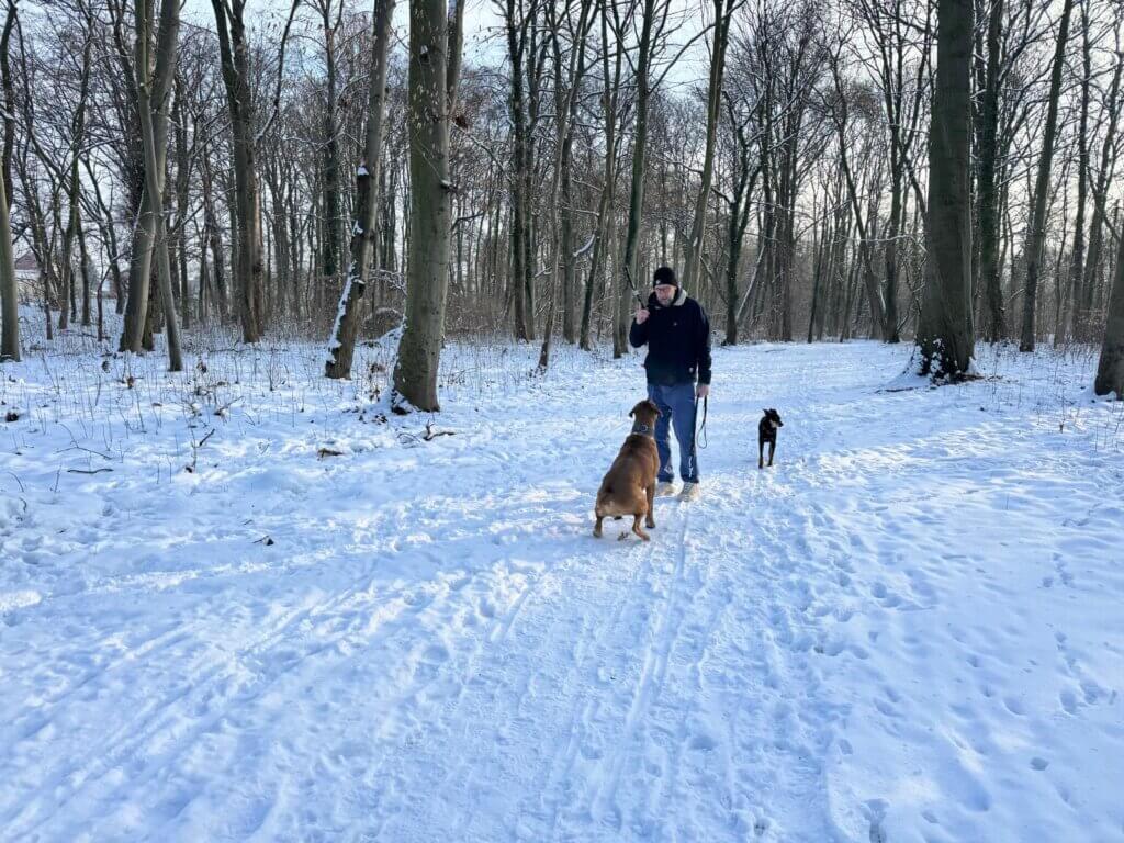 Den Morgen nutzen wir noch für einen letzten, langen Spaziergang im Schnee. Da freuen sich unsere Hunde immer besonders.