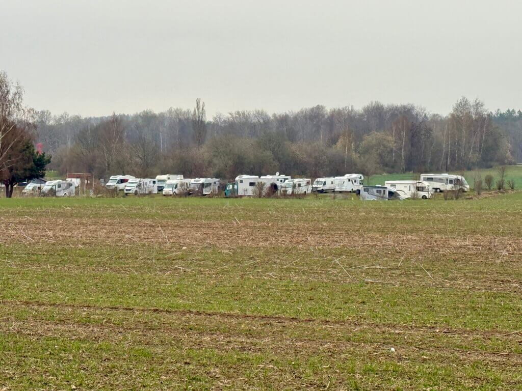 Der Platzbetreiber hat was für uns gefunden. Nach einem Hundespaziergang können wir auf den Stellplatz fahren. Ohne Reservierung….. wohl Glück gehabt, auch wenn es eher kuschelcamping ist.