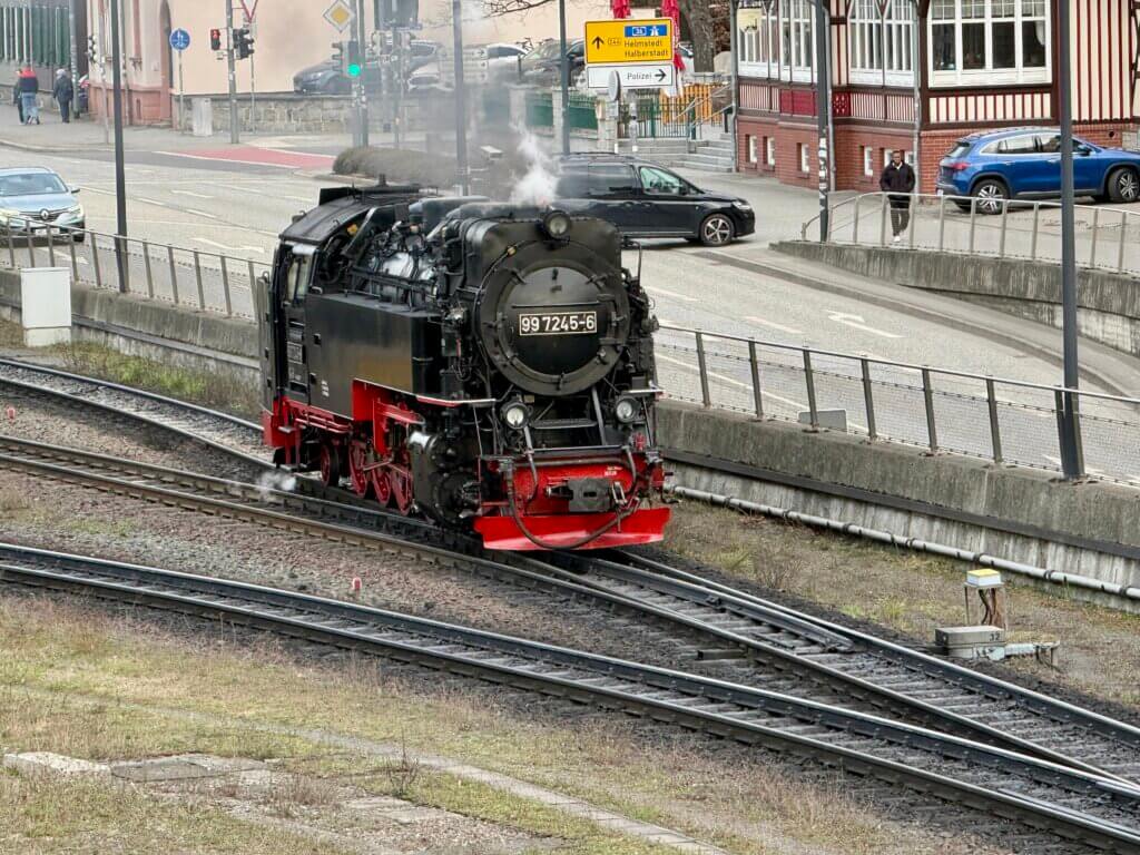 Auf dem Weg zurück sehen wir die Dampflock der Brockenbahn, die alte Dampflock ist schon toll. Die Fahrt zum Brocken werden wir bestimmt in den nächsten Tagen auch machen.