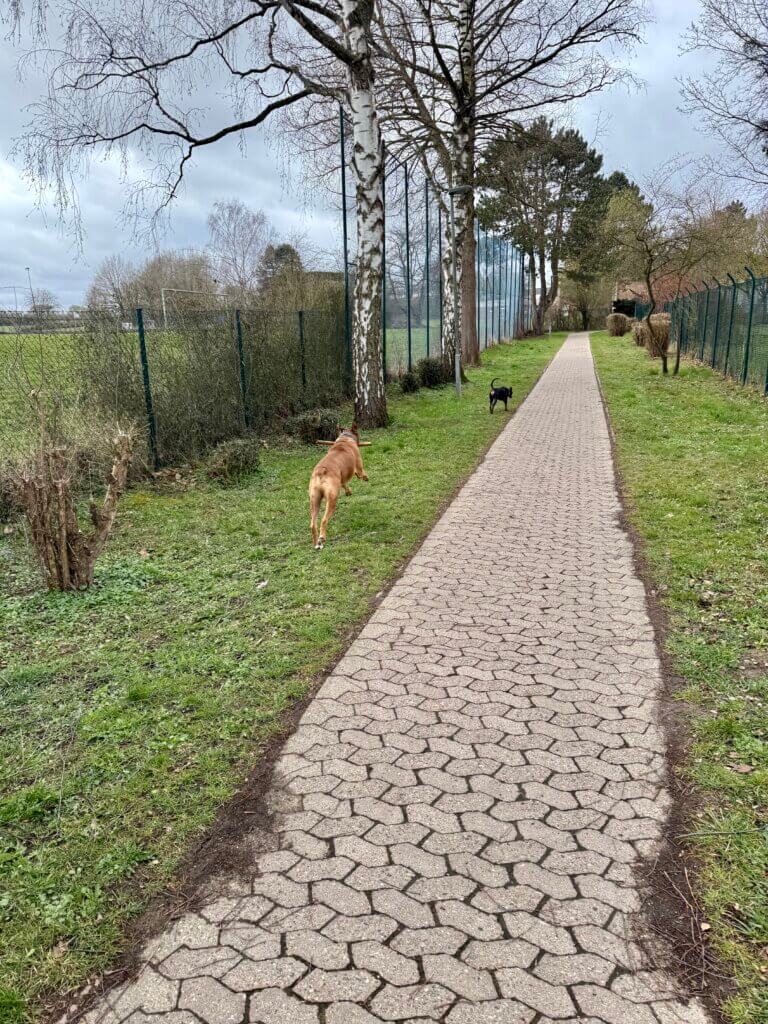 Niels fährt am frühen Morgen nochmal zur Arbeit, er hat sein Auto dabei. Dirk und ich lassen es ruhig angehen und starten mit einem Hundespaziergang…… die haben Spaß.