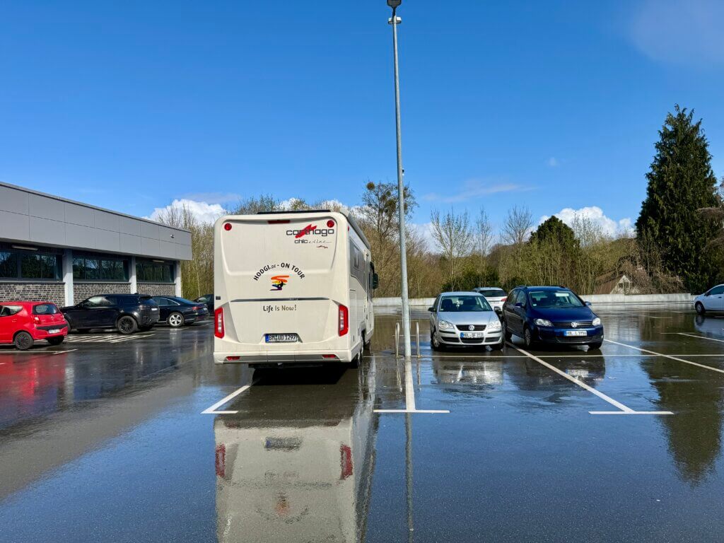 Wir stehen direkt vis-a-vis der Rezeption, etwas anders als man es kennt. Hier gibt es einen außergewöhnlichen Service: Man lässt hier die WC- Kassette vom Personal entleeren, das werden wir morgen mal testen. Wenn die Rezeption geschlossen ist kann man nicht entsorgen.