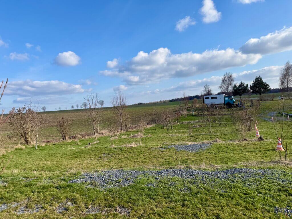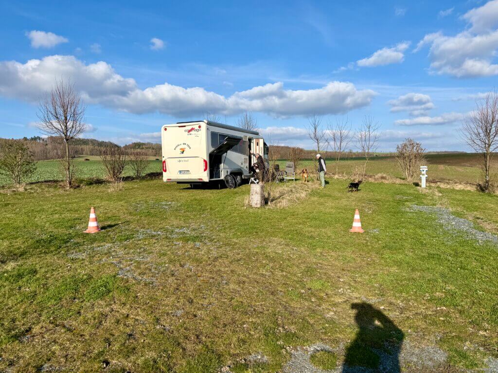 16 Uhr erreichen wir unseren Stellplatz in Lohmen, in der Sächsischen Schweiz. Der Platz ist mitten im Nirgendwo. Wir haben bestes Wetter und so nutzen wir die Zeut für eine gemütliche Pause in der Sonne.
