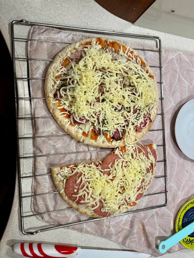 Als es selbst den Hunden zu kalt wird, verziehen wir uns in den Hodgi und bereiten eine selbst belegte Pizza.