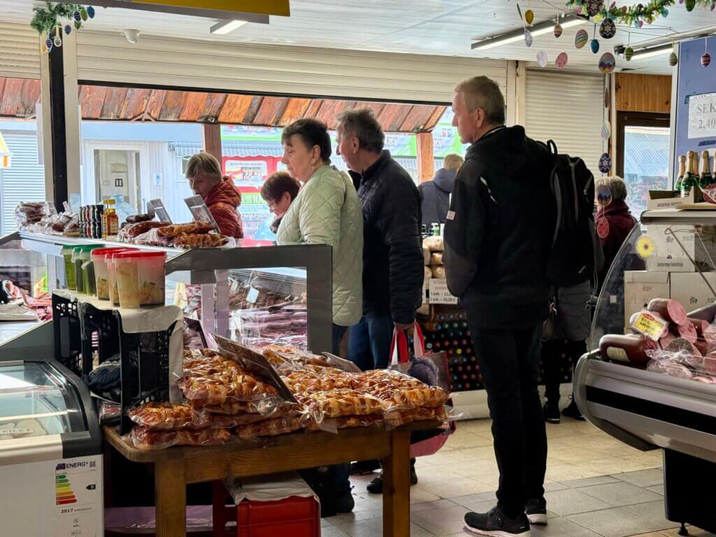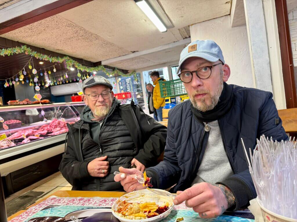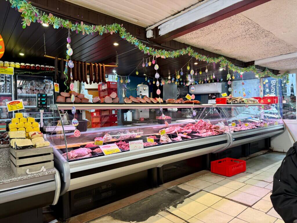 Es gibt statt Frühstück einen Schaschlikspiess und ne Krakauer mit Beilagen. Es war ganz lecker aber auch teuer….. Touristenfalle hat geklappt!